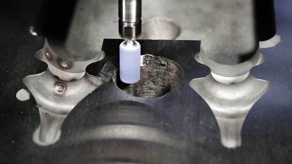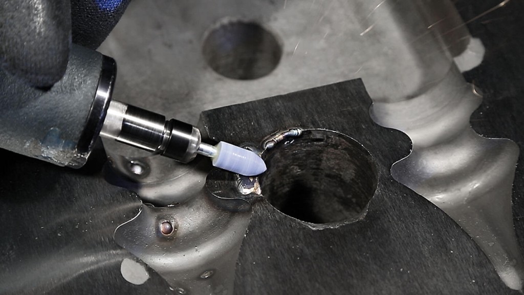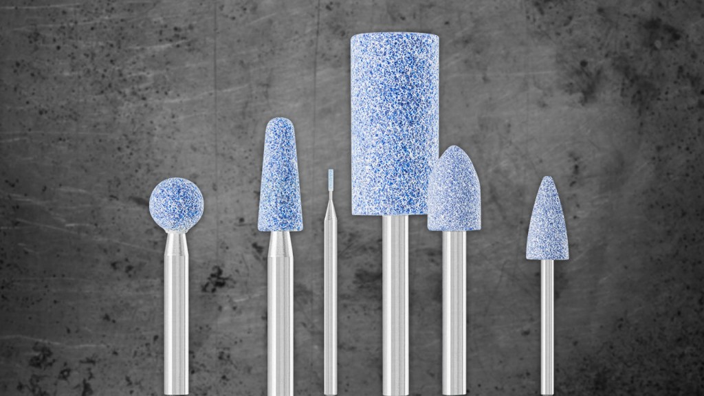 TOUGH-type mounted points consist of a vitrified bond with an aluminium oxide mixture of ceramic oxide grain and white aluminium oxide.