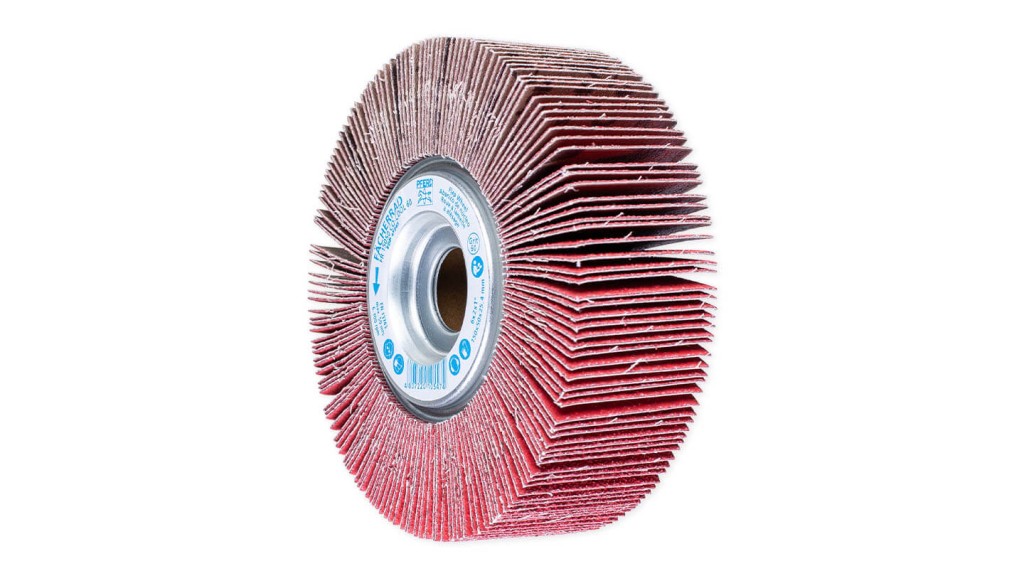 Mounted flap wheels impress with a consistently high stock removal throughout the entire tool life as new, aggressive abrasive material is constantly freed up. Face-down use very close to edges and in corners is possible thanks to the flat, moulded-core design.