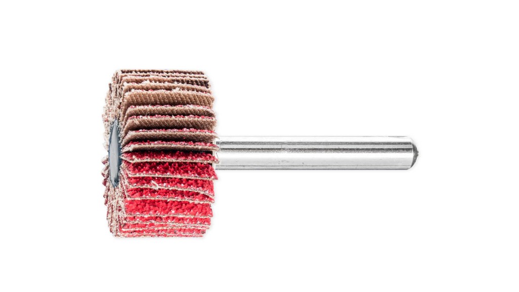 On mounted flap wheels, the flaps made of coated abrasive are arranged radially around the tool axis in a fan-type structure. Their flexibility enables them to adapt perfectly to the contours of the workpiece. The abrasive grain is embedded in the sturdy, flexible cloth backing material by means of a resinoid bond.